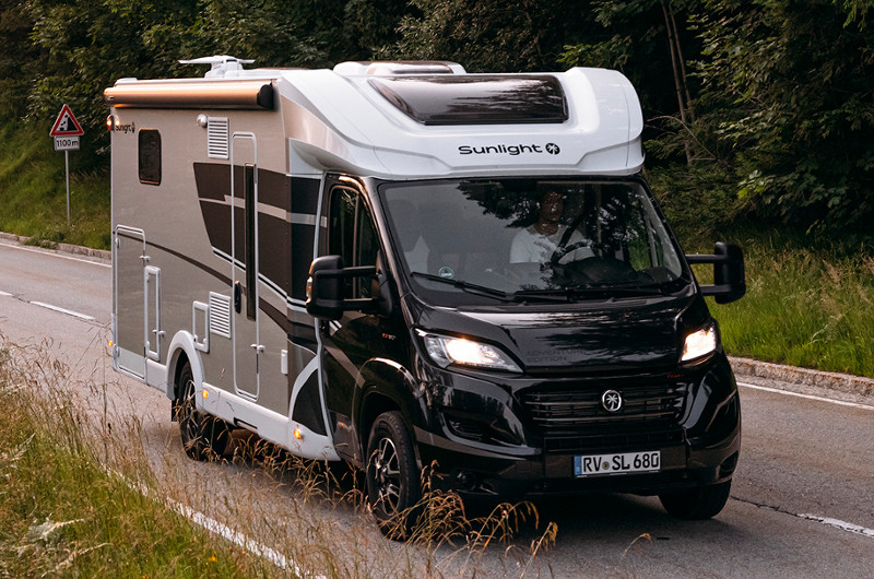 Ein teilintegriertes Wohnmobil von Sunlight. 2 Schlafplätze, 4 Reiseplätze ab 156.- CHF / Tag